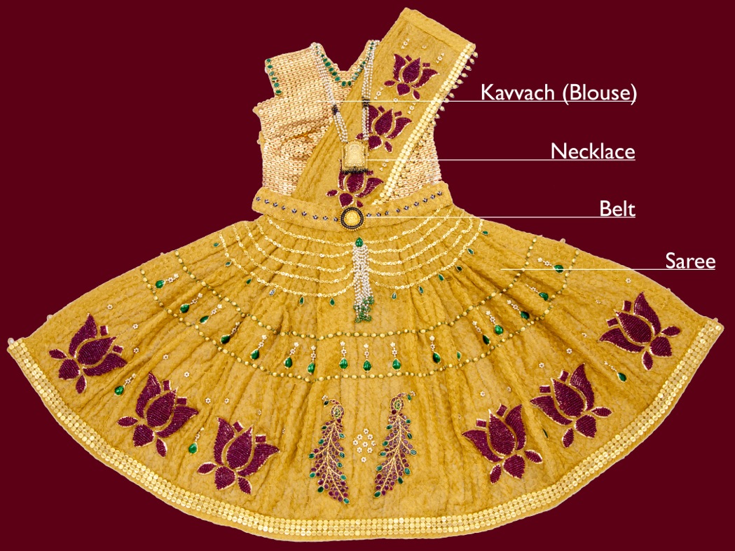 Dedicated to the goddess Padma Lakshmi, the saree was handcrafted and embellished in gold with precious stones.